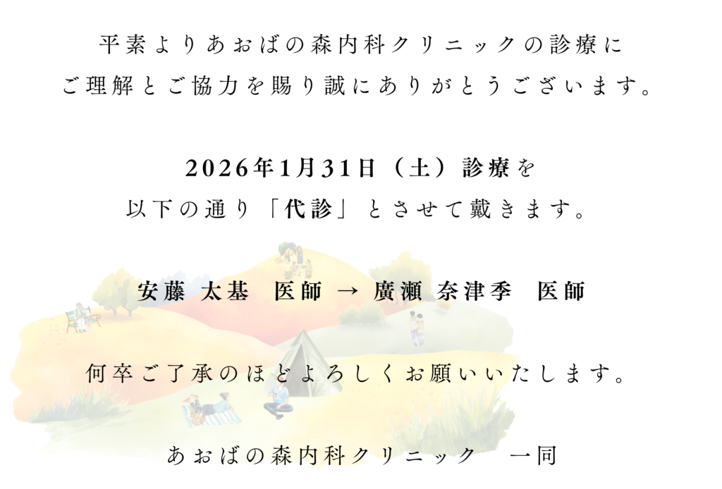 代診のお知らせ 2026/1/31(土)診療